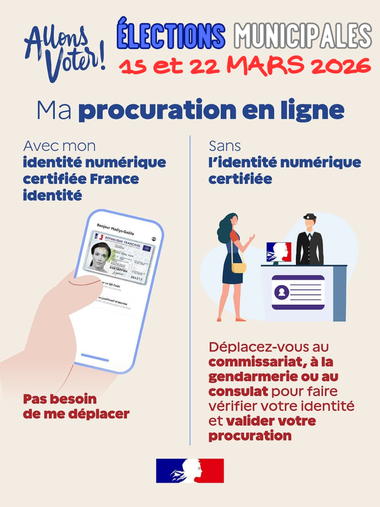 - Le procuration en ligne peut être établie simplement, grâce à l’identité numérique. Avec France Identité, la démarche peut être réalisée en ligne, de manière sécurisée : maprocuration.gouv.fr